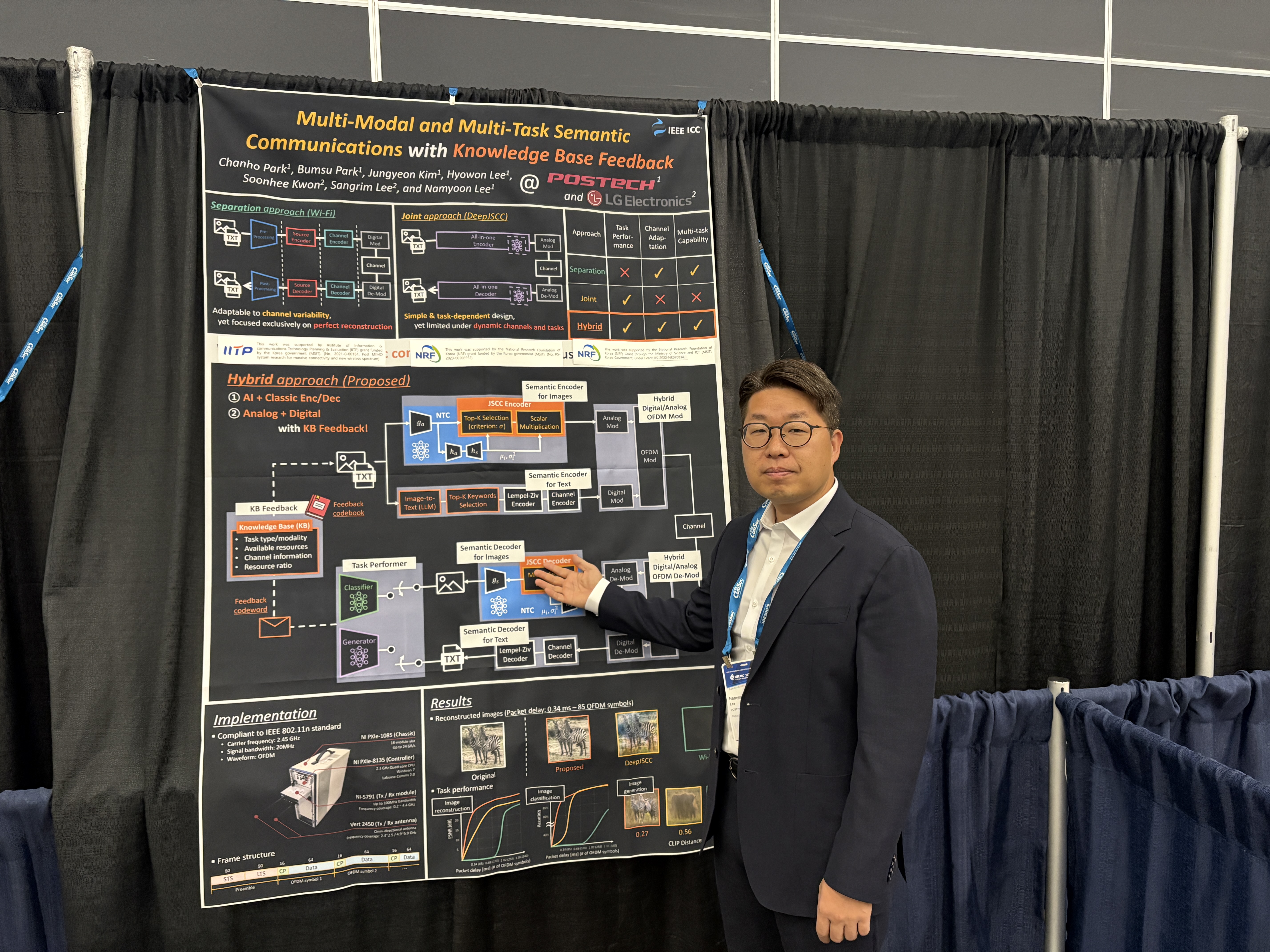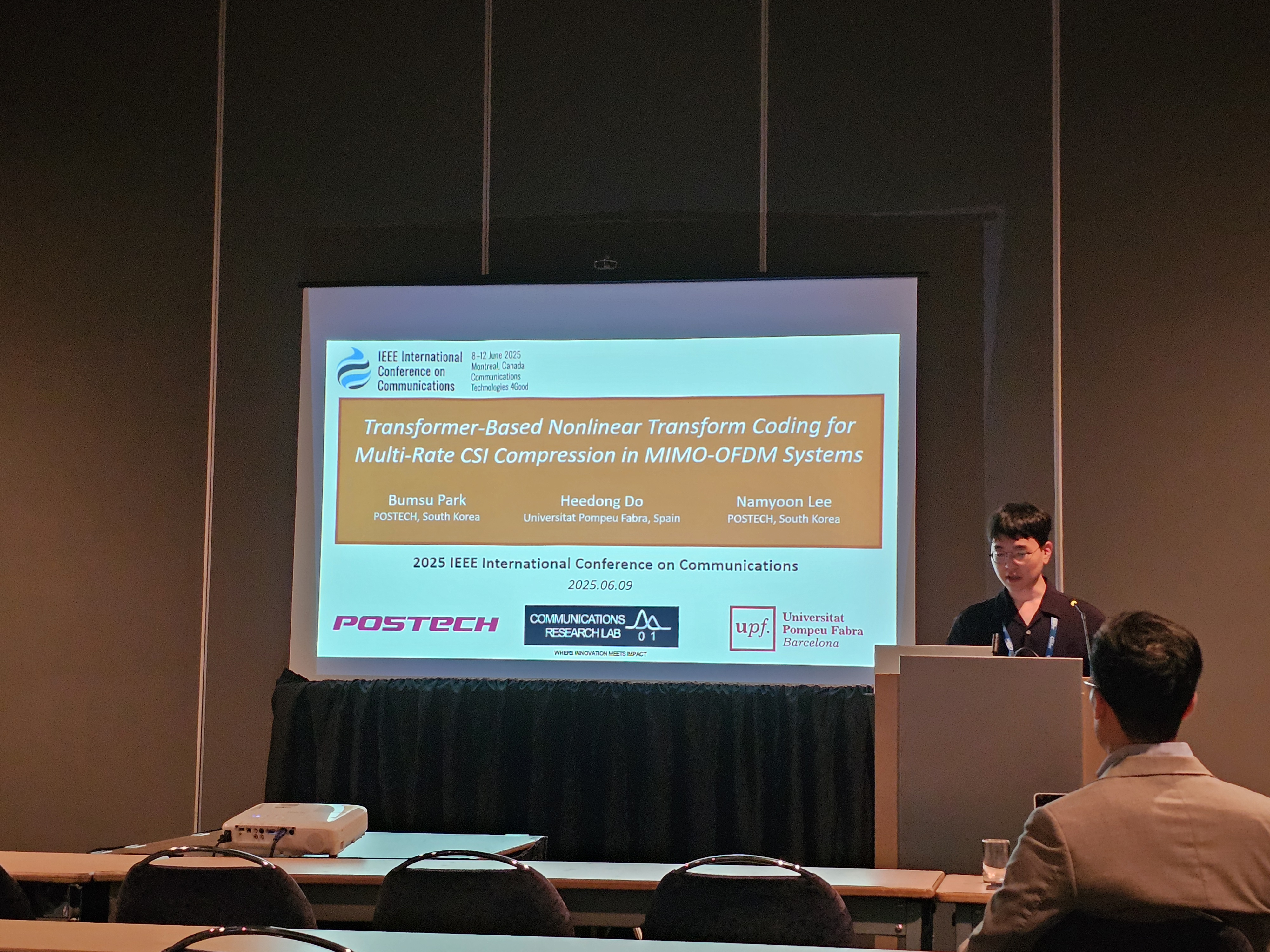Canada에서 열린 ICC 2025에서 박사과정 박범수 학생이 "Transformer-Based Nonlinear Transform Coding for Multi-rate CSI Compression in MIMO-OFDM System"을 주제롤 발표하였습니다. 더불어 LG 전자 산학과제 시연도 함께 하였습니다.